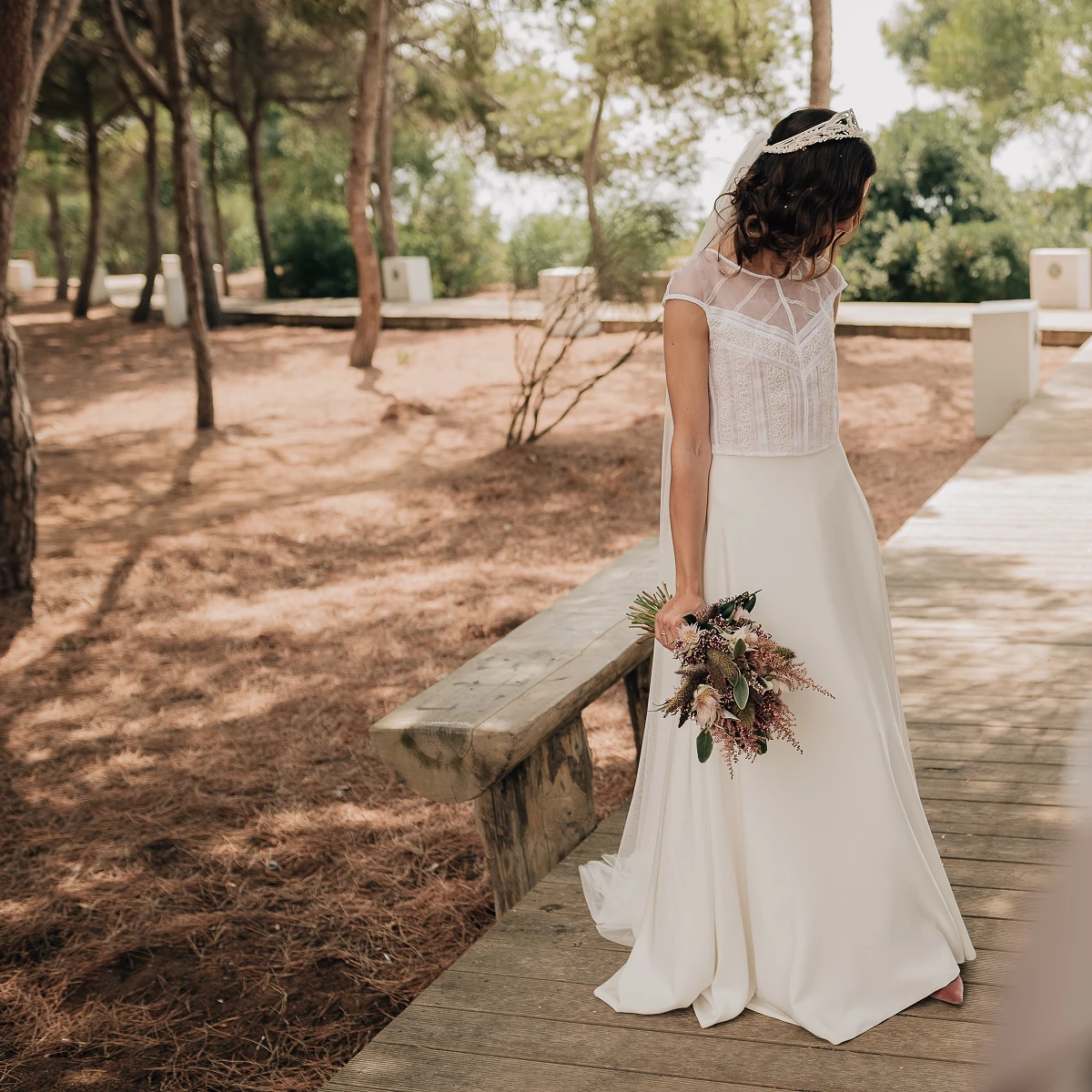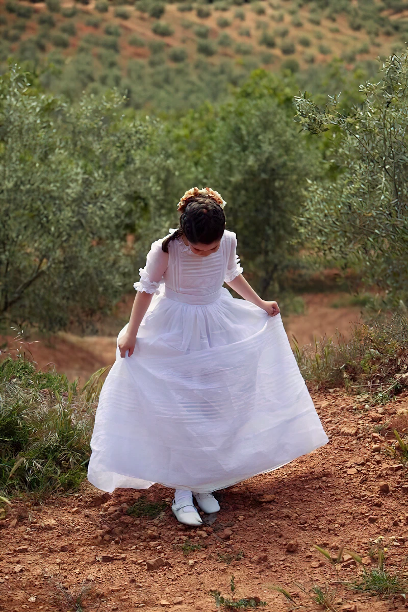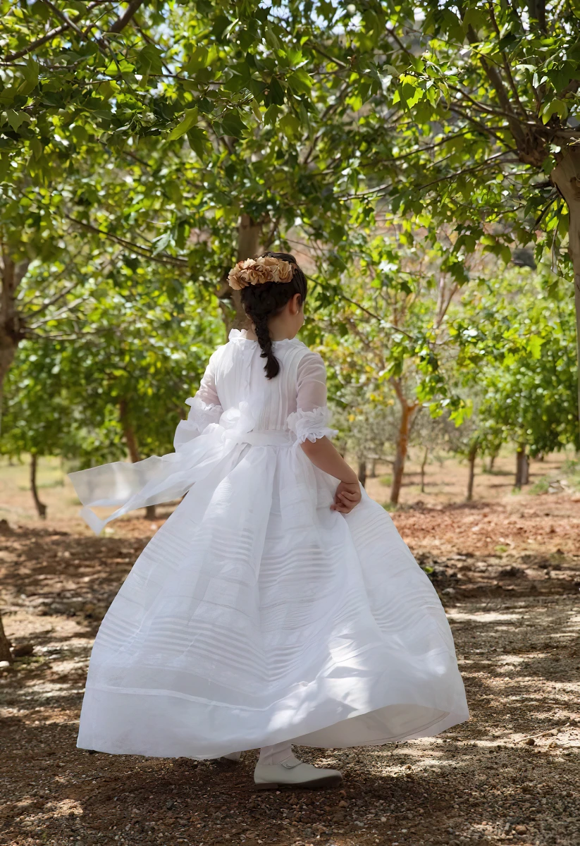 La actividad del taller se concentra en la elaboración de vestidos y trajes de novia, madrina, dama de honor, comunión, invitada y fiesta. También se realizan complementos a juego, como velos, tocados y otros accesorios.