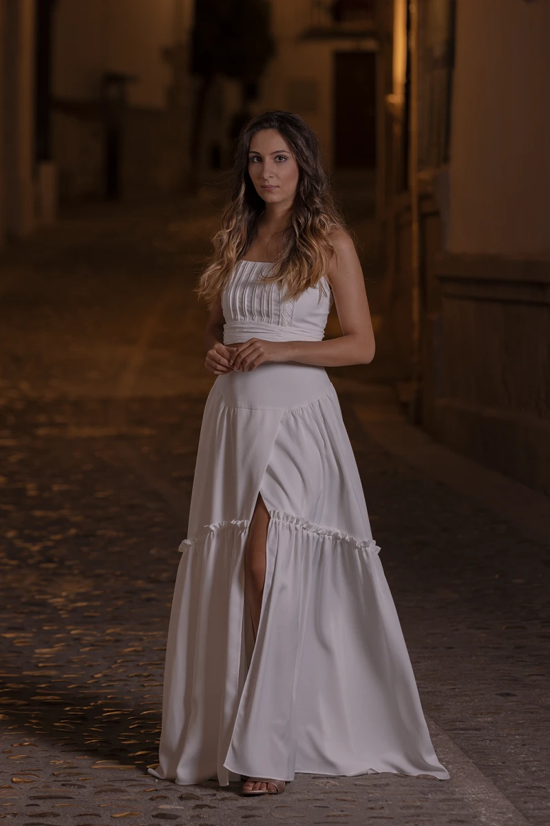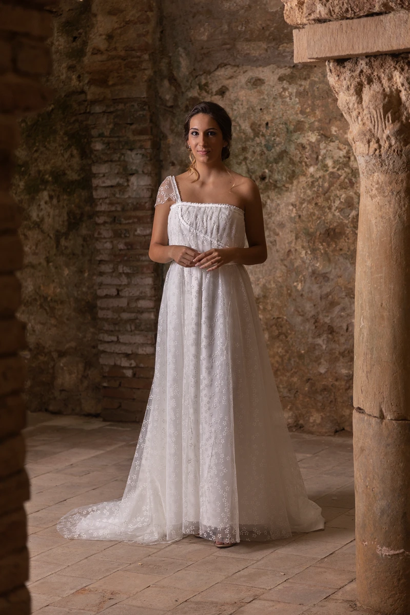Las prendas de Romero Atelier son de alta costura, es decir, se realizan por encargo, a medida y a mano, utilizando materiales de gran calidad. Este proceso exclusivo resulta en piezas únicas y artesanales, que se adaptan a la perfección a la talla, ideas y estilo de la clienta.